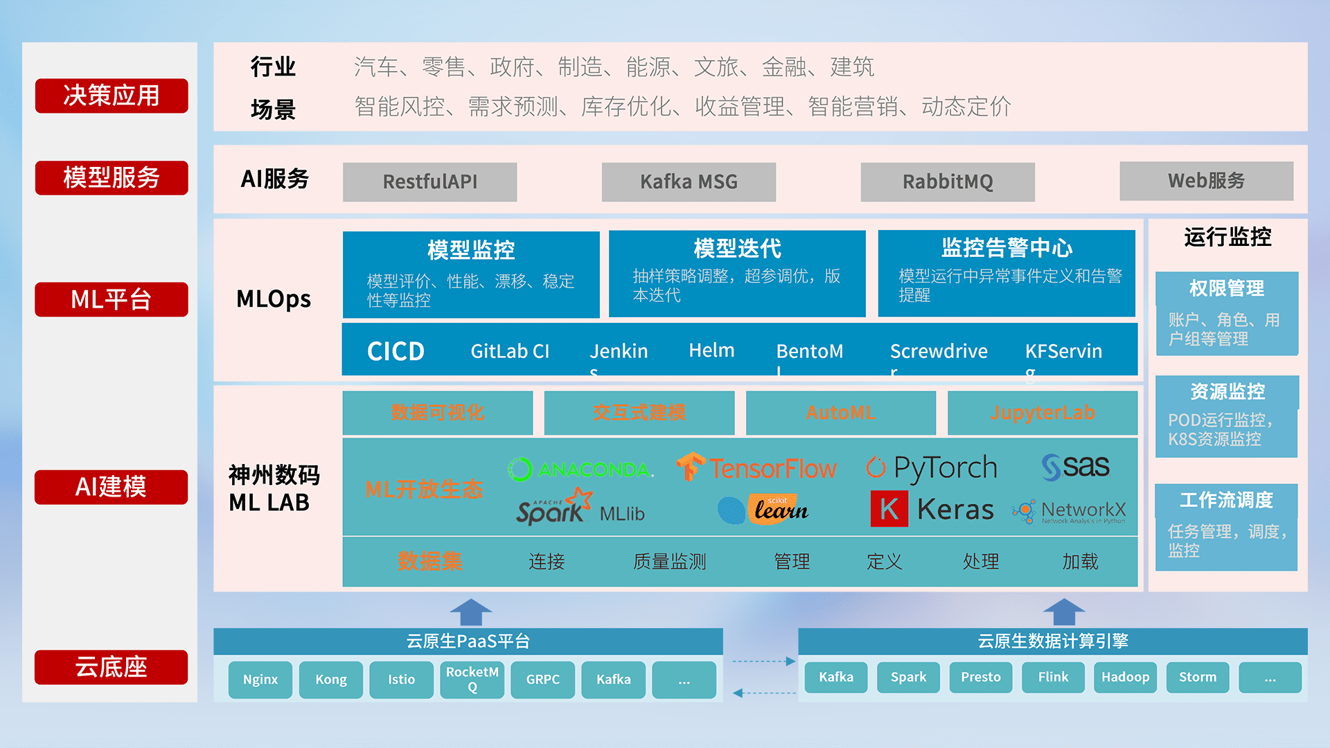 数据+模型双引擎驱动,,,面向智能服务场景,,快速灵活利用AI技术,,,,支持业务决策,,,助力企业智能化转型破局。。。。